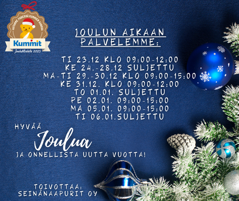 Toivotamme kaikille oikein hyvää Joulua ja onnellista uutta vuotta!